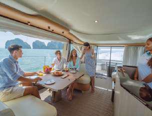 From dramatic limestone cliffs to crystal-clear lagoons, Flow Phuket curates personalized yacht itineraries for every occasion — whether it’s a romantic sunset cruise, a family day out, or a private celebration at sea.