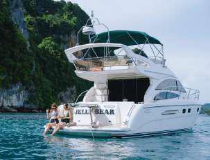 Elegant, powerful, and timeless the Princess 42 Jelly Bear embodies the heart of Flow Phuket’s luxury cruising experience.Every curve and detail is crafted for comfort, performance, and sophistication.With spacious lounges, panoramic sea views, and refined interiors, this British-designed yacht transforms every voyage into a private escape.Whether it’s a sunlit day across the Andaman or a sunset evening with loved ones, the Jelly Bear promises moments that linger long after you return to shore.