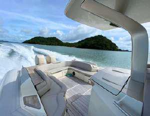Bold, refined, and irresistibly dynamic the SACS Strider 11 embodies Italian innovation and the adventurous spirit of Flow Phuket. Designed for performance and style, this luxury sport yacht merges power with elegance for an unforgettable cruising experience.Spacious sun decks, precision engineering, and seamless design create the perfect blend of thrill and comfort whether you’re exploring hidden islands or chasing the Andaman sunset in true Flow style.